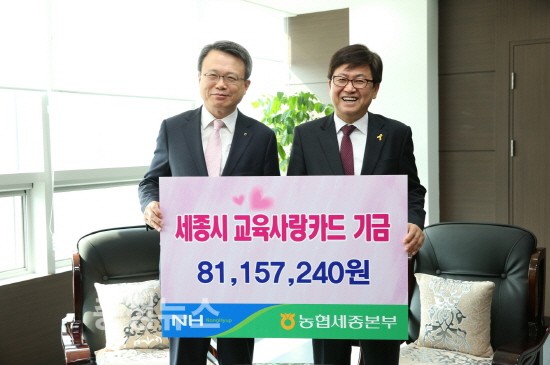 또한 세종교육사랑카드는 세종시교육청과 NH농협은행 세종영업본부가 출범해인 2012년부터 제휴한 카드로, 교육행정기관과 교직원 등 교육가족이 사용한 카드 이용실적의 일정금액이 복지기금으로 적립되고 있다. 올해는 8100만원을 조성해 어려운 학생의 장학금 지원과 교직원의 복지 증진을 위해 사용할 계획이다.