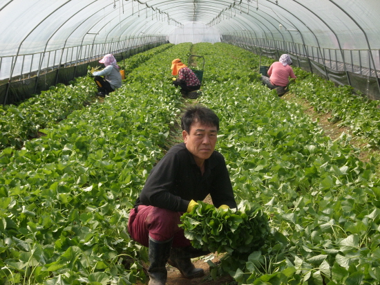 20여년의 시설재배 경험을 토대로 5년 전부터 군 농업기술센터의 기술 지도를 받아온 정산면 남천리 이주기씨는 2중 시설하우스에서 11월부터 12월, 4월부터 5월까지 10회 정도 곰취를 수확하고 있다.