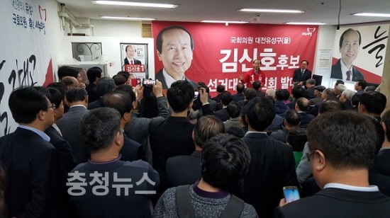 새누리당 김신호 대전 유성구을 국회의원 후보가 500여명에 달하는 메머드급 선거대책위원회(이하 선대위)를 구성하고 본격적인 선거운동 체제에 돌입했다.