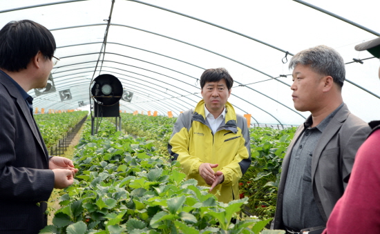 충남 논산시 황 시장은 구제역 확산방지를 위해 논산딸기축제가 취소됨에 따라 논산의 효자 작목인 딸기 재배 농가의 어려움을 격려하고 농가의 시름을 조금이라도 덜어주기 위해 지난 29일 딸기재배 농가를 방문해 애로사항을 청취했다.