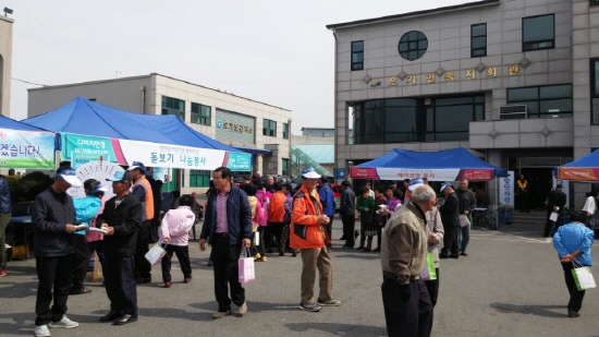 또한 행사에 참여한 65세 이상 300여명의 오가면 어르신들은 자원 봉사자들로부터 사랑의 돋보기 나누기와 건강 마사지, 이혈요법, 발 마사지 등을 받았으며 예산국악원 민요예술단과 김광식씨의 문화공연도 즐기는 등 큰 호응을 보였다.