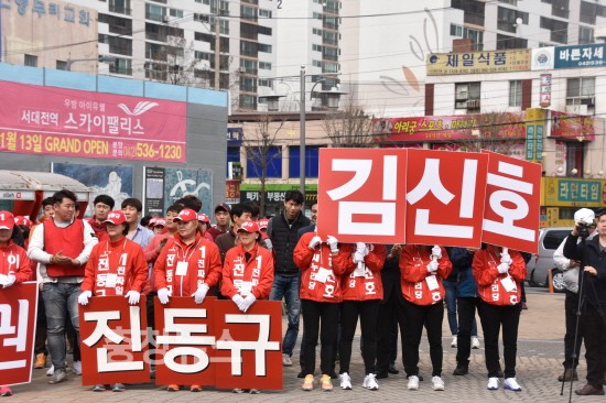 새누리당 대전시당 후보자들이 충청인 우롱 규탄 및 KTX 증편ㆍ직선화 결의대회를 열고 "지역 현안문제에 무관심으로 일관한 무능한 야당을 심판해달라"고 목소리를 높였다.