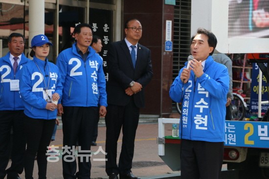 박수현 의원은 이날 오전 공주 동학사 벚꽃축제 개막식에 참석한 후 부여로 이동해 은산장에서 유세에 나섰고, 오후에는 공주 산성시장을 찾아 지지를 호소했다.