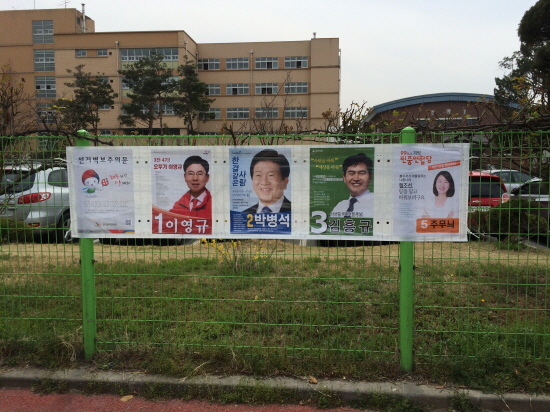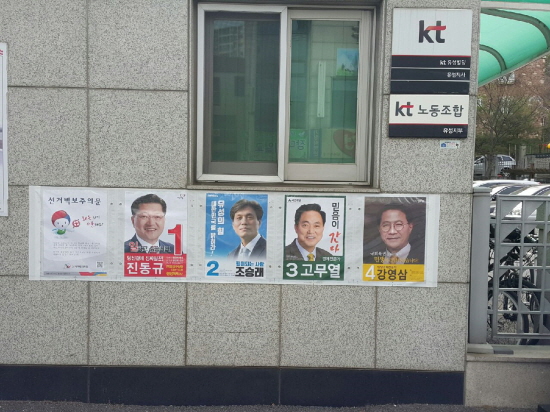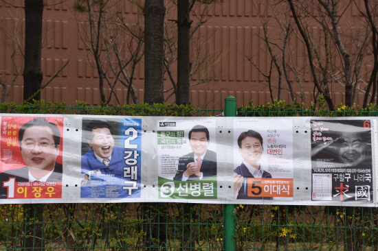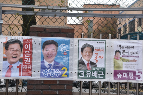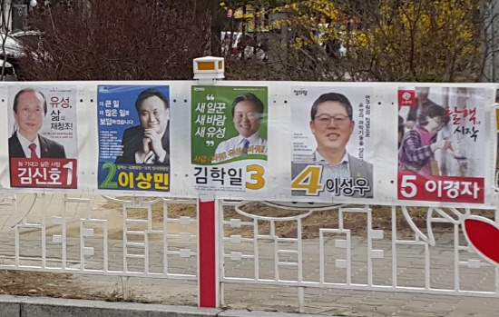 오는 4.13 총선 선거 운동이 본격적으로 시작되면서 선거구별로 붙어있는 거리 벽보에도 유권자들에 관심이 쏠리고 있다.