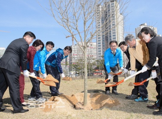 이날 학생, 공무원 등 시민 300여명이 무궁화 나무 1,400여주를 공원 과 인근 지역 곳곳에 심으며 구슬땀을 흘렸다.