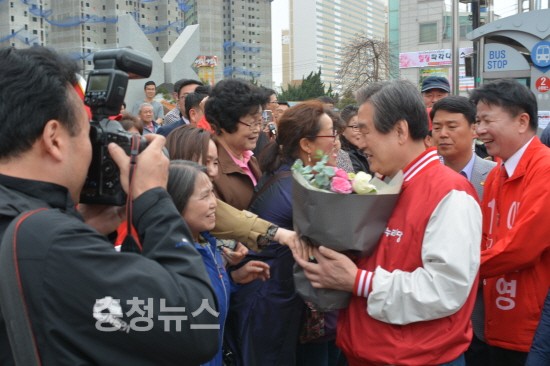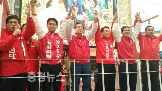 새누리당 김무성 대표가 전날 대전에 이어 6일 충남 6개 지역구를 방문하는 등 충청권 의석을 확보하기 위한 강행군을 벌였다.