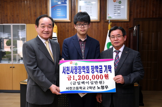 김중원 서천사랑장학회 이사장은 “우리 장학회에서 선발한 우수학생에게서 장학금 기탁을 받는 드문 사례이기 때문에 더욱 뜻이 깊다”며 “노 군의 바람대로 후배들을 위해서 소중하게 사용하겠다”라고 전했다.