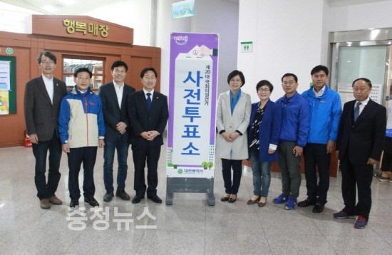 서구을 이재선 후보는 오전 가족들과 함께 시청에 들려 투표를 완료했으며 대덕구 정용기 후보도 오전 시간을 이용해 대덕구청에서 사전 투표를 완료했다.