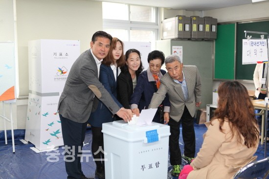 충남에서는 정진석 공주.부여.청양 후보가 자신의 가족들과 투표를 마쳤다.