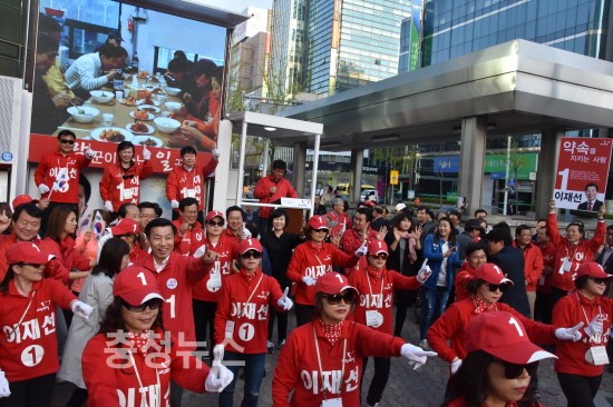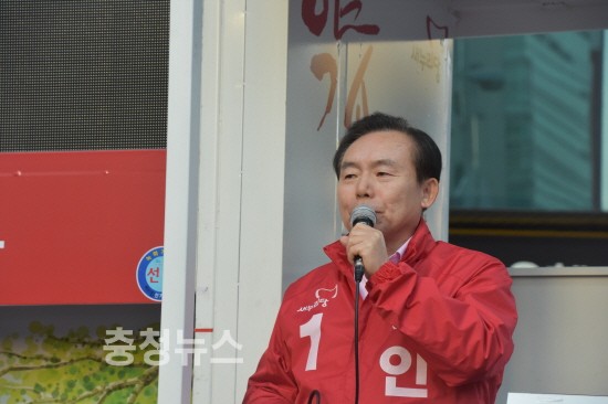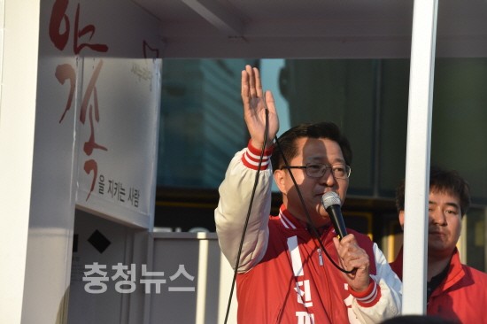 동구 이장우 후보는 “이제 충청도는 인구나 지역총생산에서 호남을 앞질러 영·충·호시대로 가고 있으나 국회의원은 호남 28석보다 1석 적은 27에 불과한 정치적 대접을 받고 있다”며 “기호 1번으로의 전략적 투표로 충청중심 시대의 기반을 세우고, 우리 후보들이 국정운영의 중심이 돼, 대전발전을 획기적으로 가져오도록 해달라”고 목청껏 외쳤다.