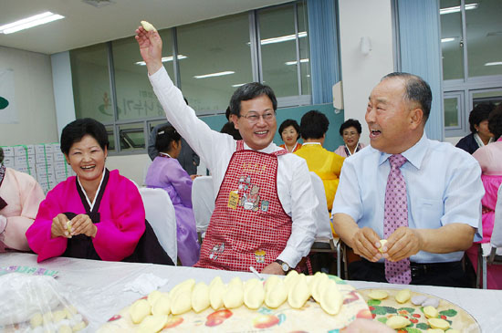 대전시 중구자원봉사협의회(회장 박성봉)는 29일 오후 2시 구청 후생관에서 자원봉사회원 50여명이 모여 사랑의 송편빚기 행사를 가졌다. 이날 빚어진 송편은 독거노인과 소년소녀가장, 장애인 가정 400여세대에 직접 전달된다.