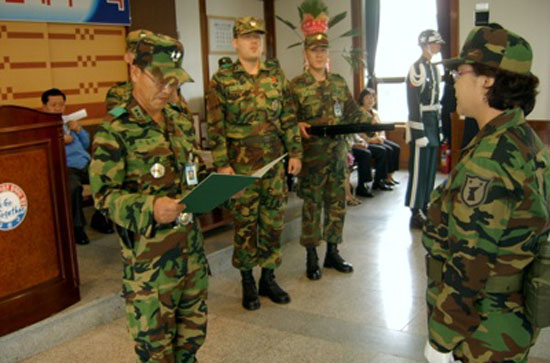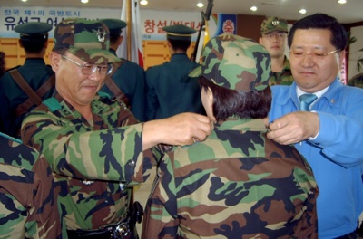 이홍기 보병 제32사단장을 비롯해 진동규 유성구청장, 이상민(우리당. 대전 유성) 국회의원, 여성 예비군 50명 등 총 100여명이 참석한 가운데 열린 이날 여성 예비군 소대 창설식은 여성 예비군의 신고, 사단장의 소대기 수여, 군악대 축하공연 등으로 진행됐다.