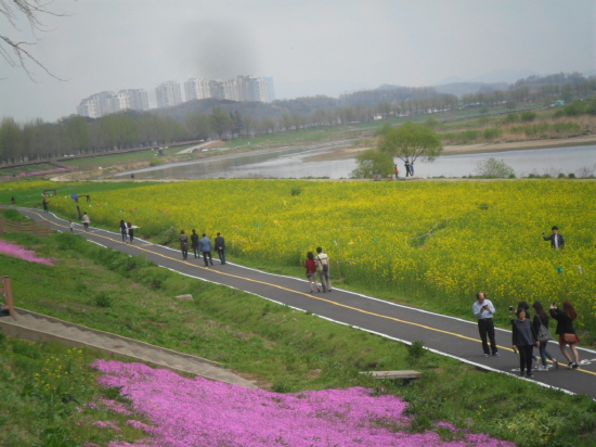 충남 아산시(시장 복기왕) 곡교천둔치(경제진흥원, 체육공원 인근) 3ha에는 지난 10일부터 60%정도의 유채꽃이 피기 시작하면서 나비들을 불러 모으고, 그 은은한 유채의 향으로 연인들과 가족들의 소풍 장소로 각광을 받고 있다.