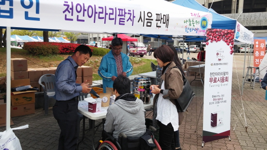 ▲ 아라리팥차 시음행사 (사진제공- 천안시청)
