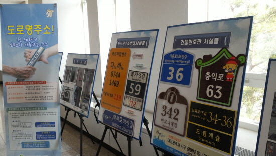 이번 전시내용으로는 도로명주소의 기본 체계, 안내시설물 설치사례, 건물번호판, 기초번호판, 국가지점번호판뿐만 아니라 외국 사례도 함께 볼 수 있다.