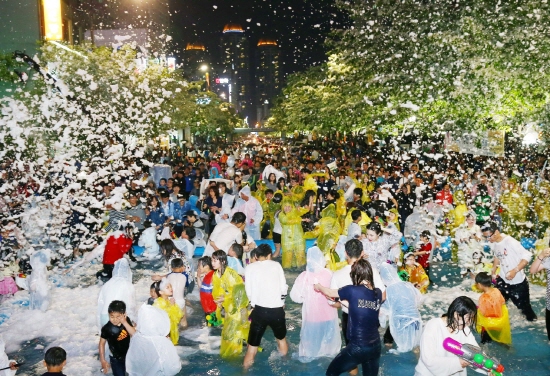 ▲지난해 열린 2015년 유성온천문화축제 버블버블DJ파티 모습 (사진제공- 유성구청)