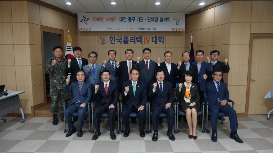 한국폴리텍대학 대전캠퍼스(학장 서규석)는 4월 27일(수) 대학본부 4층 세미나실에서 2016년 1/4분기 ‘대전광역시 동구 기관·단체장협의회’ 정기회의를 개최했다고 밝혔다.