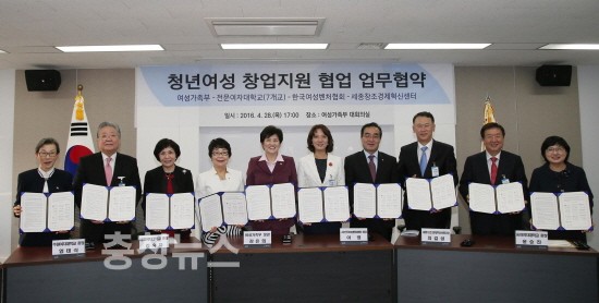 세종창조경제혁신센터(센터장 최길성)는 청년여성이 함께하는 창업생태계 조성을 위해 지난 28일 여성가족부(광화문 정부서울청사 내)에서 여성가족부(장관 강은희), 전국 7개 전문여자대학교(경인여자대학교, 배화여자대학교, 부산여자대학교, 서울여자간호대학교, 수원여자대학교, 숭의여자대학교, 한양여자대학교), 한국여성벤처협회(회장 이영)와 함께 ‘청년여성 창업지원 협업 업무협약’을 체결했다고 29일 밝혔다.