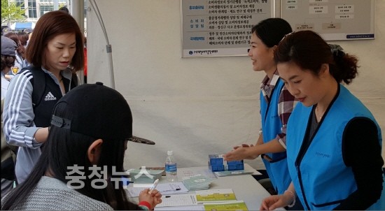 ▲ 소비자 문제 상담, 에너지절약 서명운동,‘팽이만들기 체험’행사 전개하고 있는 도정자 대전소비자공익네트워크 회장.