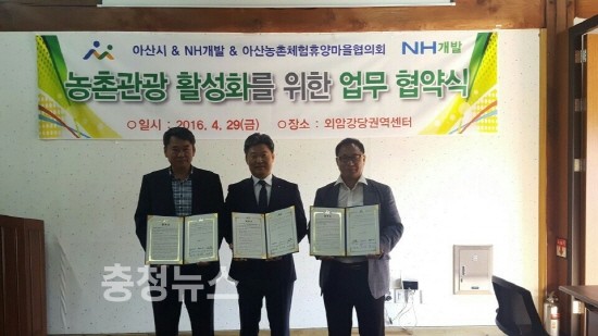 이번협약으로 아산시가 가지고 있는 온천, 현충사, 신정호수공원, 장영실과학관 등과 같은 유명관광지와 외암민속마을 등 10개소 농촌체험휴양마을과 연계한 여행상품을 NH개발에서 판매·고객모집하기로 하여 수도권 시민들의 농촌체험 테마여행이 가능하게 된다.