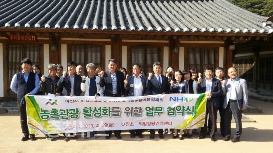 아산시(시장 복기왕)가 지난 29일 외암강당권역센터에서 농촌체험관광 활성화를 위하여 NH개발과 업무 협약을 체결했다.