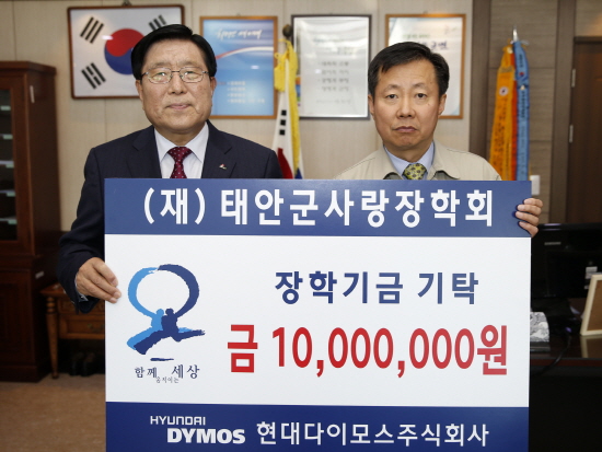 충남 태안군은 서산시에 공장을 두고 있는 경기도 화성시 소재 자동차부품 전문회사인 ㈜현대다이모스(대표 조원장)가 군에 장학금을 기탁했다고 밝혔다.