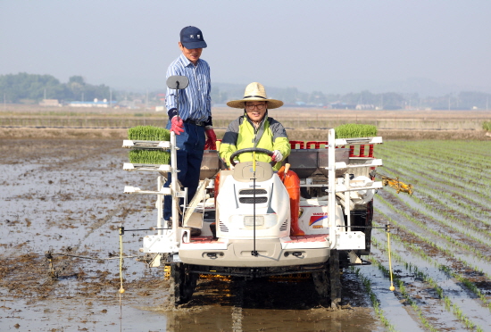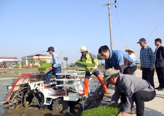 충남 김홍장 당진시장이 17일 모내기를 하는 신평면 신송리 이주한(59세)씨 농가를 방문해 이앙기를 직접 운전하며 벼를 심는 등 농가의 일손을 도왔다고 밝혔다.