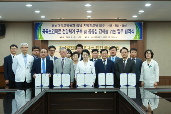 충남대학교병원(원장 김봉옥)은 5월 17일(화) 오전 11시 충남대학교병원에서 충남지역 공주의료원(원장 김영배)․서산의료원(원장 최영호)․천안의료원(원장 김영호)․홍성의료원(원장 김진호)과 업무협약을 체결했다고 밝혔다.