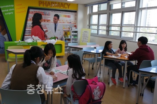 늘봄초는 학생들이 학교 내 여유 공간을 활용해 만든 병원, 공항, 식당 등 영어체험관 4개관에서 멘토들과 자연스럽게 수업을 진행하면서 영어권 문화에 자연스럽게 다가갈 수 있도록 했다.