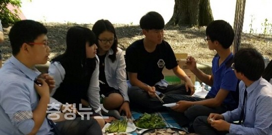 연동중학교(교장 정회택)는 지난 18일 5~6교시 창의적체험활동 시간에 학생들이 텃밭에서 직접 재배한 작물을 수확하고 친구와 교사, 가족과 나누는 활동 후에 교직원과 학부모가 함께 행복을 나누는 삼겹살 축제를 열었다.