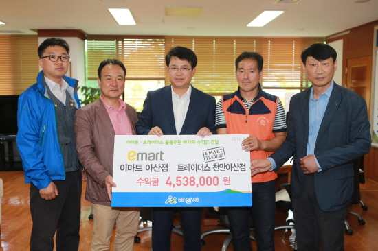 한편, 이마트 아산점과 트레이더스 천안아산점은 2015년에도 2회에 걸친 바자회 행사를 후원하여 총 1,140여만원의 수익금을 아산시 온양2․3동 행복키움추진단에 복지기금으로 전달한 바 있다.