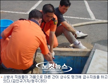 소방차 급수지역 늘어 충북지역에서 극심한 가을가뭄으로 식수난과 농작물 피해가 확산되고 있다.기상청에 따르면 청주지역은 8월 평년 강수량의 52%인 52mm의 비가 내린 데 이어 9월에는 18.4mm의 강수량을 기록해 평년 대비 강수량의 13.8%에 그쳤다.보은군의 경우 9월 한달 동안 27.5mm의 비가 내렸으며 충주와 제천 역시 강수량이 각각 21.7mm, 25mm에 불과한 실정이다.이에따라 제천시 수산면 율지리와 청풍면 연론리 20여가구 40여명의 주민들은 식수원이던 마을 계곡물이 말라 10여일째 소방차 급수를 이용하고있으며 괴산군 청천면 장암리·장척리 40여가구 주민 100여명도 소방차 급수에 의존하고 있다.또 충청북도 소방본부도 이달들어 제천과 단양 영동군등 도내 25개 지역에 80여차례에 걸쳐 급수지원에 나섰으며 산간지역마을의 지원요청이 늘고 있다고 밝혔다.농작물 피해도 이어져 김장용 무.배추의 경우 토양 수분함량이 작물재배 유효함량대인 70%에 훨씬 미치지 못하면서 수확량이 크게 줄어들 전망이며 진천과 청원 충주등 도내 80㏊가 병충해를 입었다.충북도내 790군데의 저수지 저수량은 모두 10만 9,000여톤으로 저수율이 64%에 그치고 있다.한편 도 소방본부는 각 소방서별로 급수지원 소방차량을 운영해 대민지원 활동에 만전을 기할 계획이다.청주CBS 김인규 기자 leankim@cbs.co.kr
