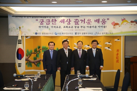 충청권 4개 교육청 교육감이 23일(월) 대전광역시 리베라호텔 14층 오키드홀에서 만나 충청권의 아이들이 현재와 미래를 행복하게 살아가도록 특별한 책임과 소명을 다 하자고 협의했다.