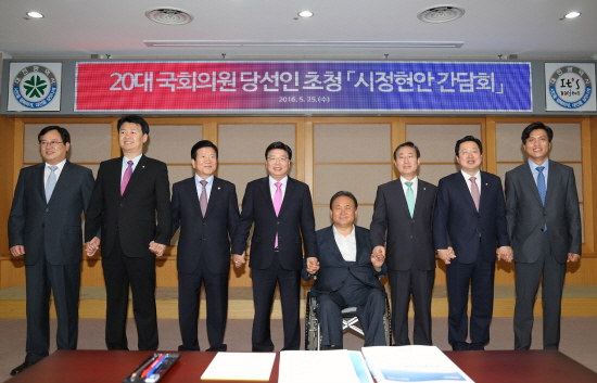 제20대 총선 대전 지역 국회의원 당선인 7명이 권선택 시장과 공식적인 첫 만남을 가졌지만 서로의 입장 차만 확인한 채 끝나 씁쓸함을 남겼다.