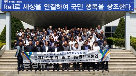 한국철도시설공단(이사장 강영일)은 지난 5월 19일(목)부터 2일간 공단 시설장비사무소(청주) 제1교육장에서 전철전원분야 설계사․제작사 등 33개 업체 관계자 70여명이 참석한 가운데 핵심자재 규격개정․최신기술 적용방안 등에 대한 토론회를 개최했다고 25일 밝혔다.
