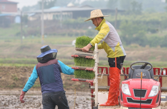 구본영 시장은 이날 윤여집(64세) 농가 3970㎡의 논에서 찰벼 모내기 작업에 직접 참여했다.