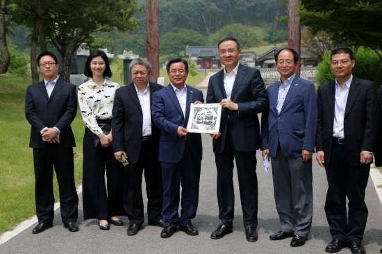 ▲ 중국 중경시 문화위원회 왕 준 주임을 비롯한 7명의 충칭시 문화위원회 한국방문단이 26일 서천을 방문(사진제공- 서천군청)