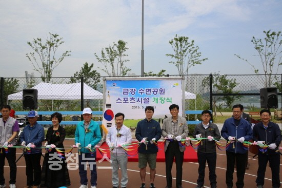 이충재 행정중심복합도시건설청장이 28일 세종시 대평동에서 금강 수변공원 스포츠시설 개장식을 개최했다.