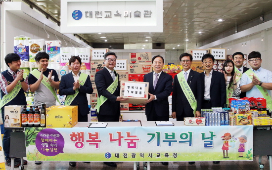 대전시교육청(교육감 설동호)이 31일(화) 교육청 1층 현관에서 생활 속의 나눔 실천을 위하여 상반기 '행복 나눔 기부의 날'행사를 개최했다고 밝혔다.