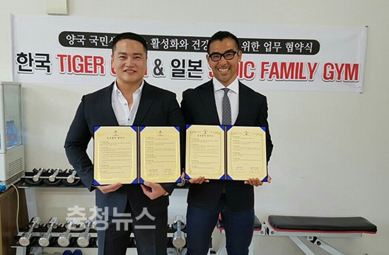 ▲ 이영찬 한국 타이거짐대표(좌)과 일본 STOIC FAMILY GYM 대표(우) 상호협력 협약식 개최 (사진 = 타이거짐 제공) 충청뉴스 최형순 기자