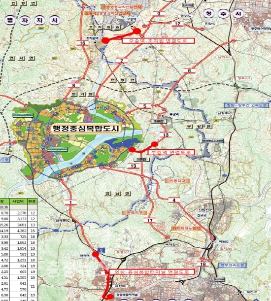 ▲ 광역도로 위치도 행복청 제공 / 충청뉴스 최형순 기자