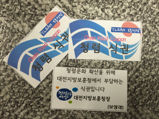 보훈청 관계자는 ‘청렴식권제도를 통해 업무관련자의 청탁등의 부조리 요인을 차단해 기관 청렴도를 제고하는 기회가 될 것이다“라고 밝혔다