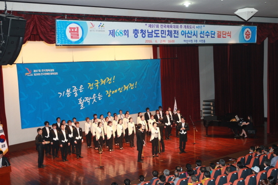 충남 아산시체육회 복기왕회장은 6월 2일 아산시청 시민홀에서 오는 6월 9일부터 12일까지 예산군 일원에서 개최되는‘제68회 충남도민체육대회에 출전하는 선수단 결단식’을 개최하고 선전을 다짐했다고 밝혔다.