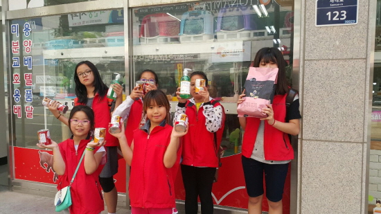 그 프로젝트의 일환으로 조치원교동초는 자원봉사동아리 ‘나눔천사단’을 지난 4월 발대했다. 자원봉사활동의 첫 시작으로 유기동물을 돕기로 하고, 학생들은 매주 목요일 열리는 조치원 와글와글 프리마켓(일명 조와마켓)에 최근 참여했다.