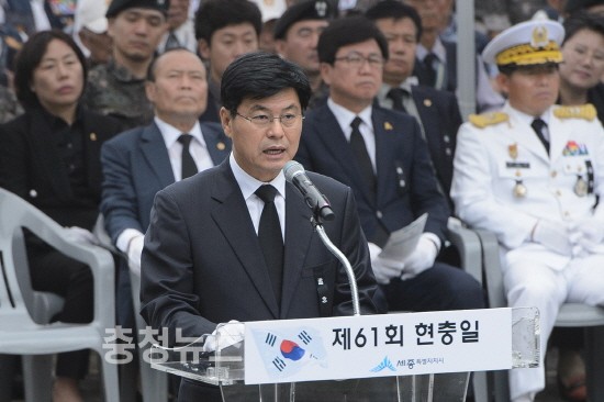 이춘희 세종특별자치시장이 현충일을 맞아 6일 충령탑 앞 광장에서 조국 수호를 위해 헌신․희생하신 순국선열과 호국영령의 숭고한 희생을 기리는 ‘제61회 현충일 추념식’을 개최했다.