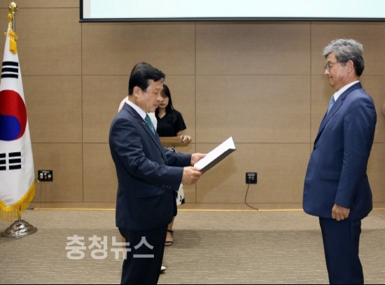 ▲ 이충재 행정중심복합도시건설청장(좌) 행정중심복합도시 총괄기획가(김대익 건축도시공간연구소장)위촉식. 행복청 제공