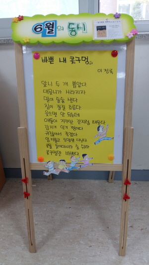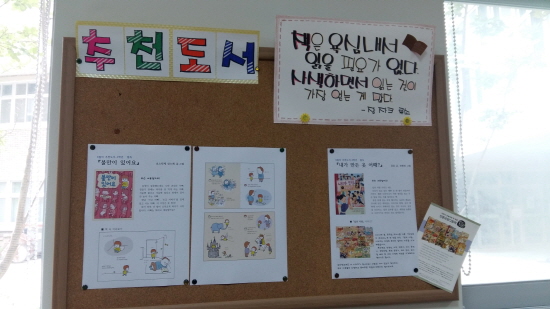 최근 학부모 명예사서들은 아름초에서 구입하거나 기증 받은 2700여권의 도서 라벨링, 정리 작업 뿐 아니라, 필독․권장도서 추천 코너, 주요 시리즈에 대한 작가 소개 코너, 이달의 동시 코너 등을 도서관 내에 기획․운영했다.