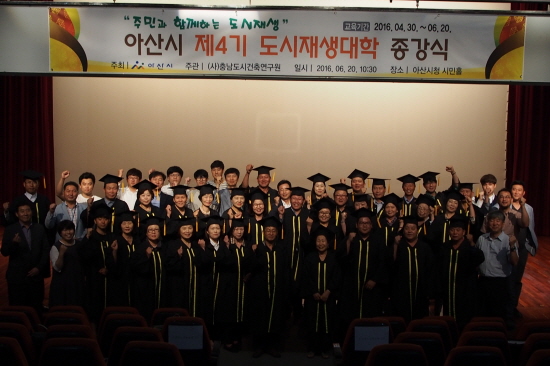 충남 아산시(시장 복기왕)는 6월 20일 시청 시민홀(본관 3층)에서 아산시 제4기 도시재생대학 수료식을 개최했다고 밝혔다.