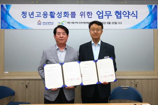 한남대 대학창조일자리센터(센터장 윤천석)는 22일 교내에서 대전·세종지역 인적자원개발위원회(공동위원장 박희원 대전상공회의소장)와 청년고용 활성화를 위한 업무 협약을 체결했다고 밝혔다.