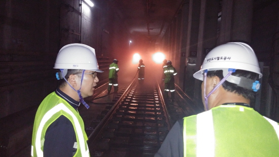 공사 관계자는 도시철도 전 구간 물청소를 매년 정기적으로 추진하고 올해도 지난 4월부터 10월까지 7개월간 터널 고압물청소를 실시하고 있으며 터널 내 자연적으로 발생하는 지하수를 청소 용수로 활용하여 물청소에 따른 경비도 줄이고 있다고 전했다.